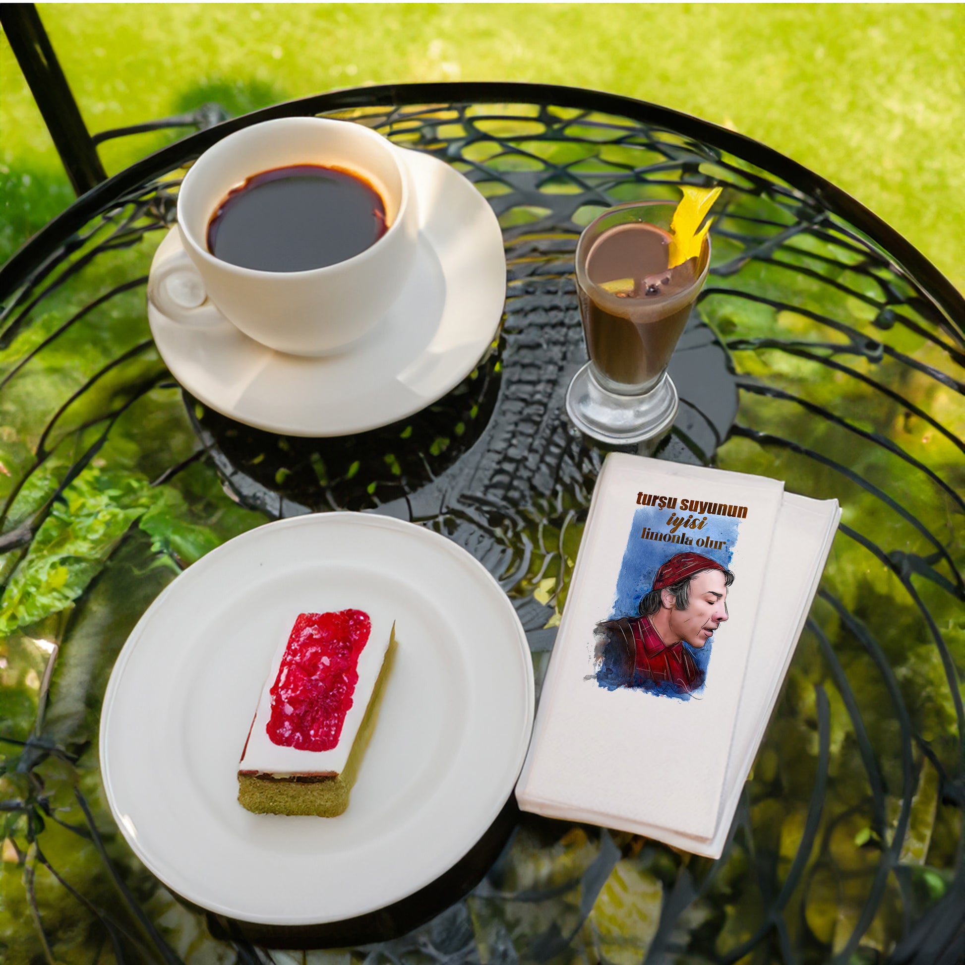 “Turşu Suyunun İyisi Limonla Olur” repliğiyle hazırlanmış bu özel tasarım peçete, hem ev sofralarında hem doğum günü, davet, piknik ve konsept organizasyonlarda unutulmaz bir detay oluşturur.
