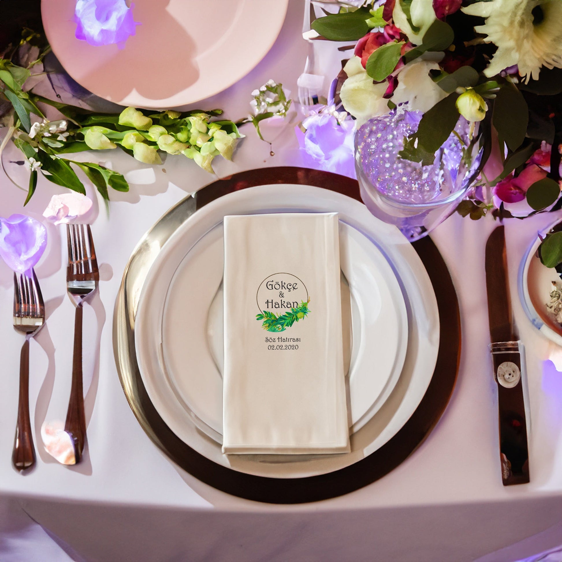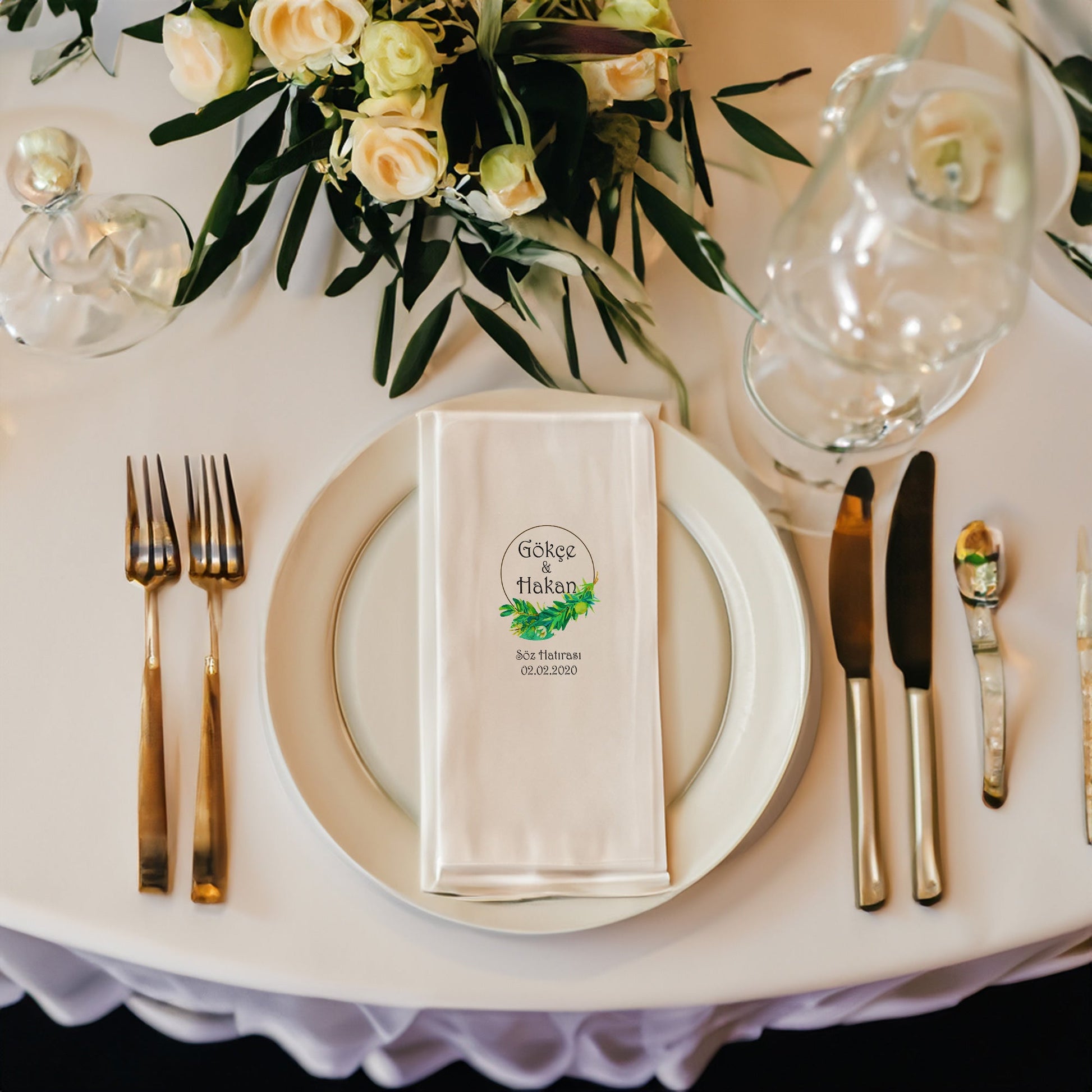 Özel günlerinizi unutulmaz kılacak zarif bir dokunuş: Zeytin Dalı Çerçeveli Düğün, Nişan, Söz ve Kına Peçetesi Seti!