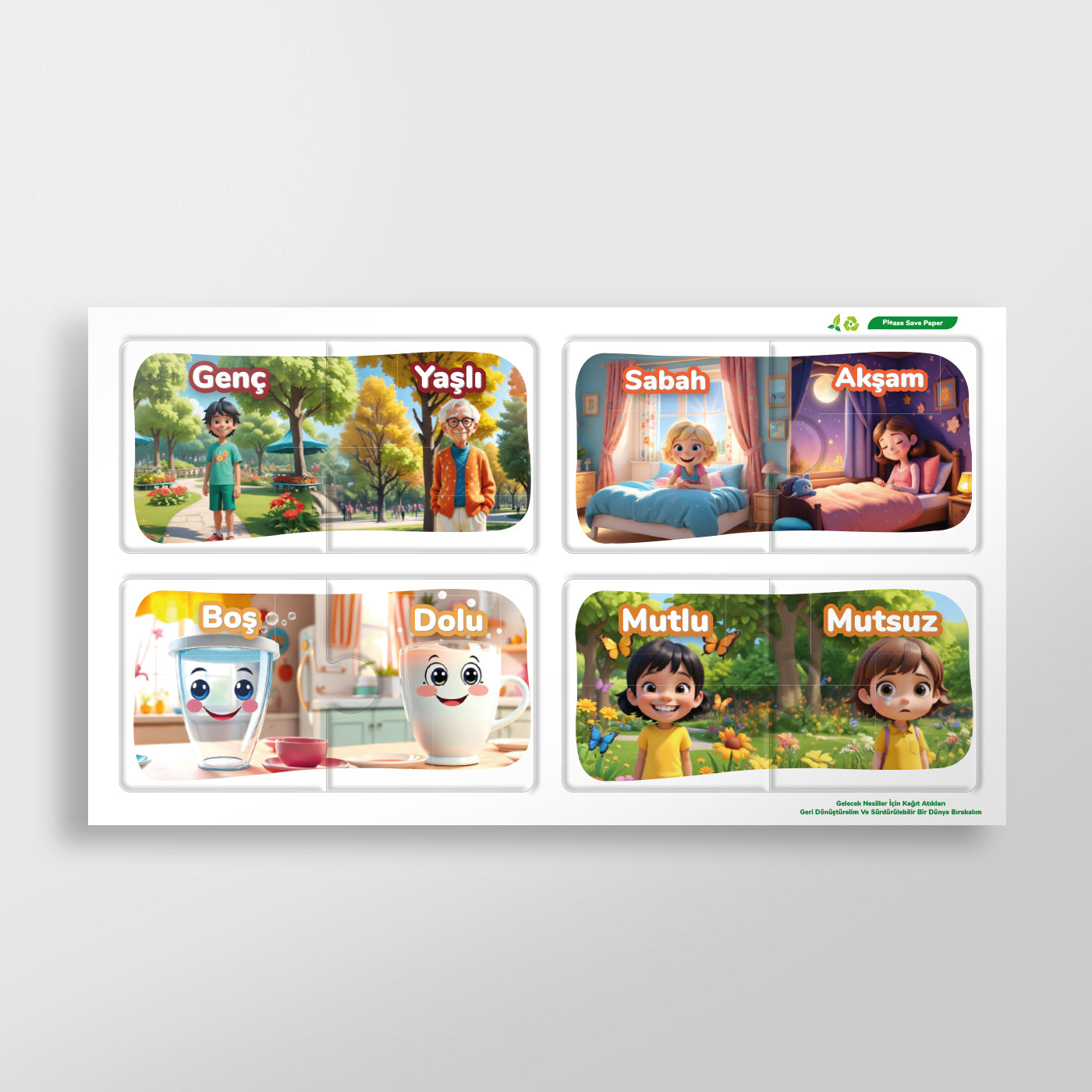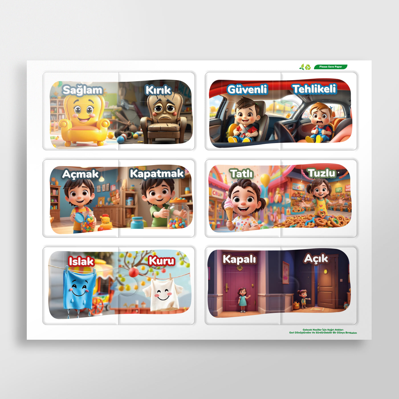 - Eğitici ve Eğlenceli: Çocukların zıt anlamlı kavramları öğrenmesini eğlenceli hale getirir.